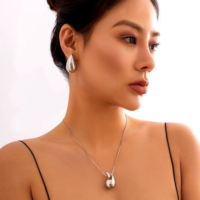 Complete the look with our stunning teardrop earrings and matching necklace set. Crafted with the same attention to detail and elegance, this ensemble creates a harmonious look. A perfect complement to your outfit.